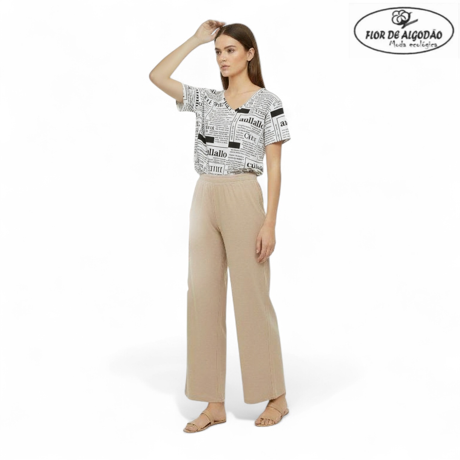 Blusa Baby Look – Estampa Jornal | Flor de Algodão
